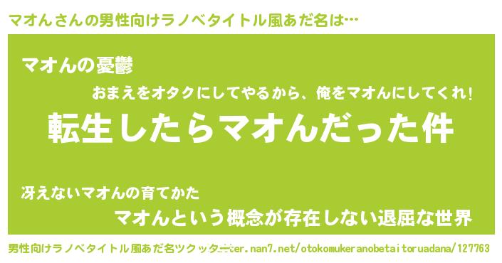 | 胡散臭い通販商品みたいなあだ名 | 『モテモテ間違いなし霊験あらたかなお札…その名も「マオん」』 |