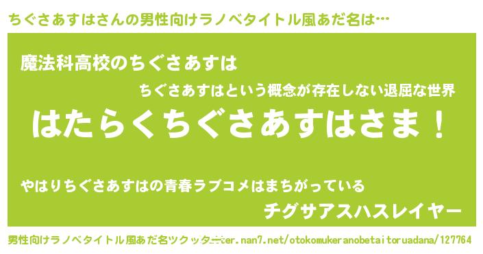 | 意味不明あだ名 | 『自称ちぐさあすは』 |