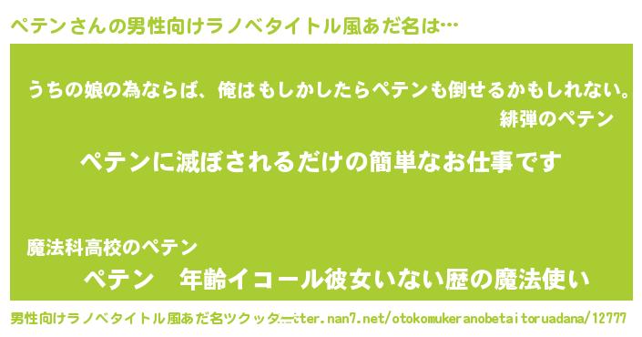 | 意味不明あだ名 | 『ペテンフォーエバー』『自称ペテン』 |