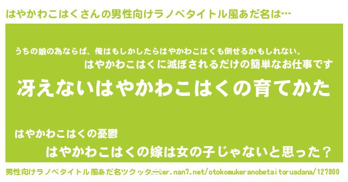 | 意味不明あだ名 | 『はやかわこはくフォーエバー』 |
