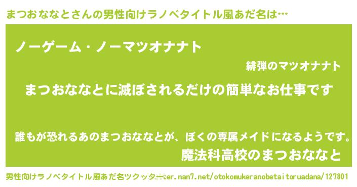 | ヒーロー風カッコイイあだ名 | 『慈愛の使者まつおななと』 |