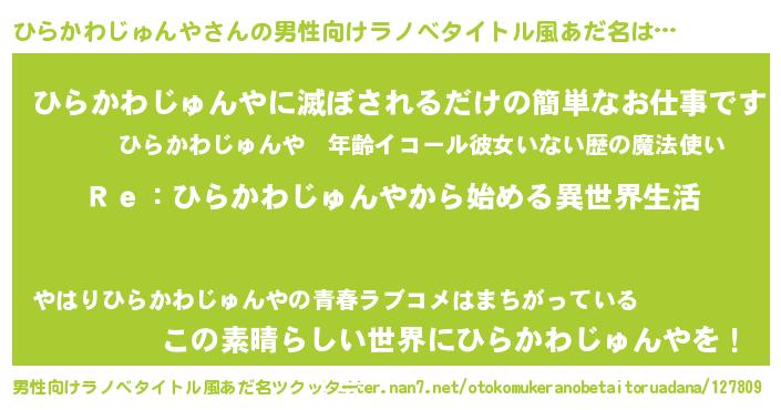 | 肩書あだ名 | 『ひらかわじゅんや総統』 |