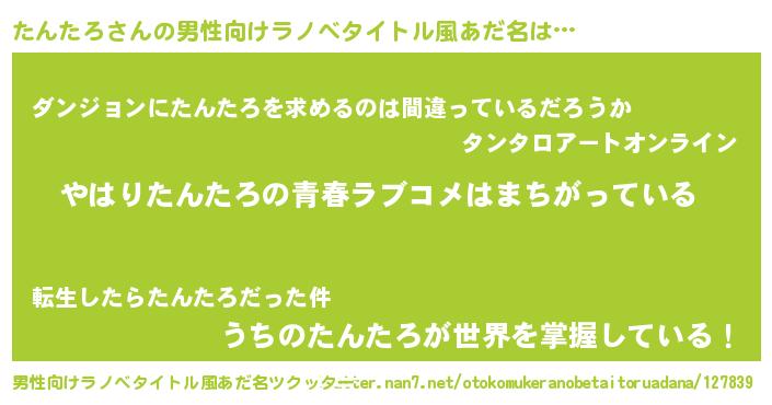 | 女子向けラノベタイトル風あだ名 | 『たんたろ伯爵の花嫁』 |