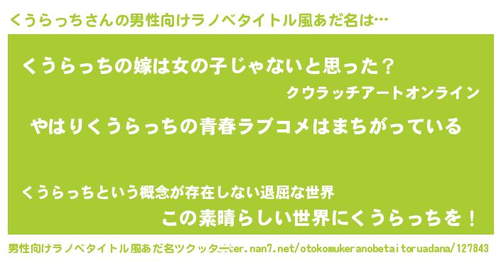| 女子向けラノベタイトル風あだ名 | 『くうらっちの雑貨屋さん』 |