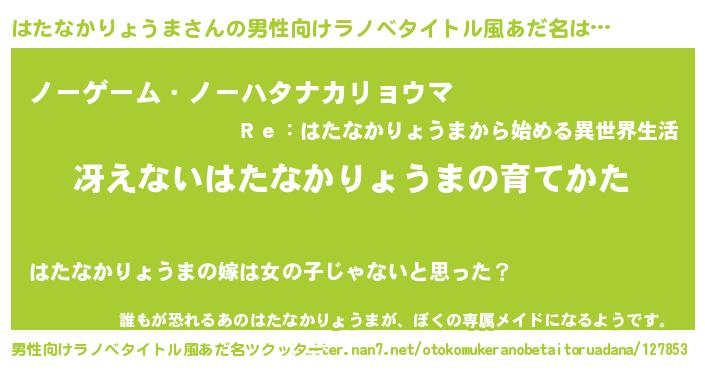 | ヘコむあだ名 | 『はたなかりょうま(遠い目)』『はたを』 |