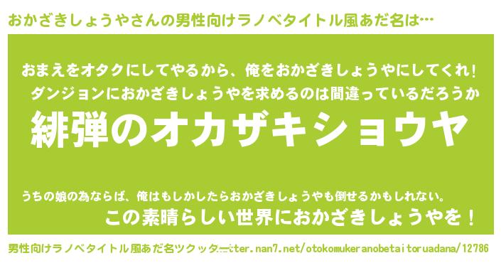 おかざきしょうやさんの男性向けラノベタイトル風あだ名をツクッター!