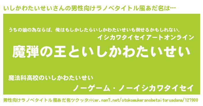 | 伝説のあだ名 | 『秘められし忍者いしかわたいせい』 |