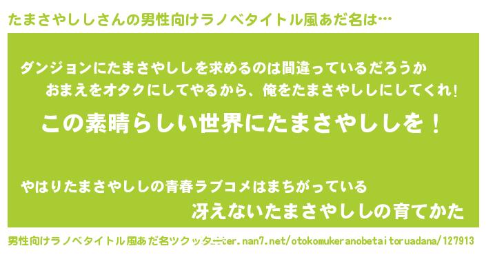 | 意味不明あだ名 | 『住所不定無職たまさやしし(77歳)』 |