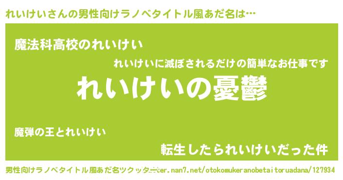 | 意味不明あだ名 | 『ペロリンれいけい』『自称れいけい』 |