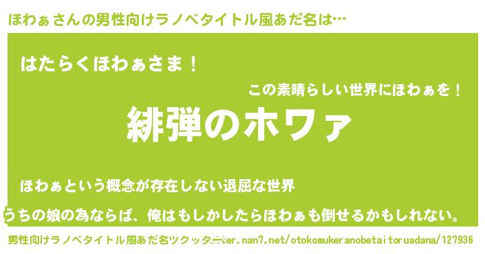 ほわぁさんの男性向けラノベタイトル風あだ名をツクッター!