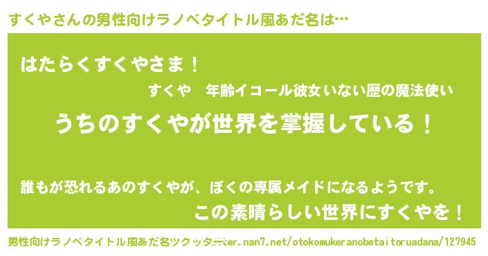 | 意味不明あだ名 | 『住所不定無職すくや(95歳)』 |