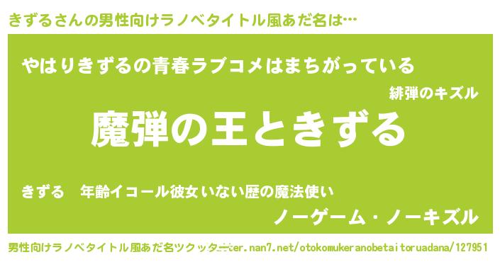 | 意味不明あだ名 | 『住所不定無職きずる(41歳)』 |