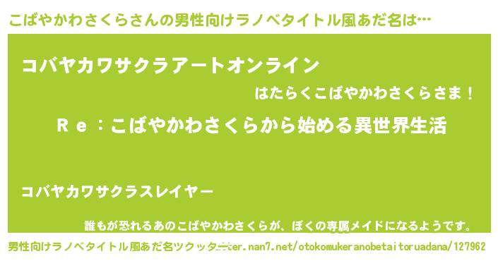 | 女子向けラノベタイトル風あだ名 | 『こばやかわさくらストレイドッグス』 |