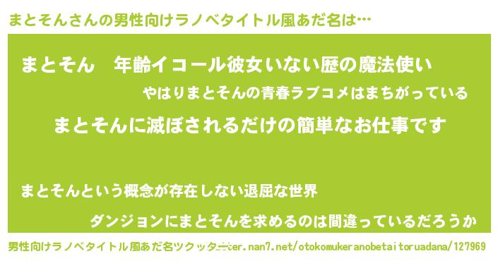 | ヒーロー風カッコイイあだ名 | 『天弓騎士マト』『ウルトラまとそんマン』 |