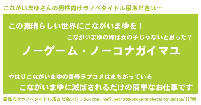 | 女子向けラノベタイトル風あだ名 | 『こながいまゆ恋絵巻』 |