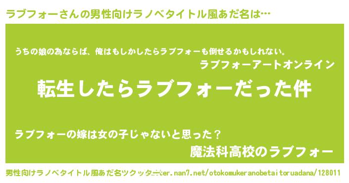 | 女子向けラノベタイトル風あだ名 | 『ラブフォーの玉の輿計画!』 |