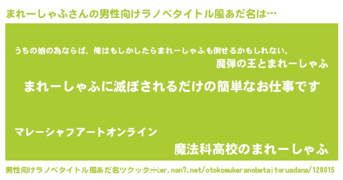 | ファンタジー風あだ名 | 『エターナルマレーシャフー』 |