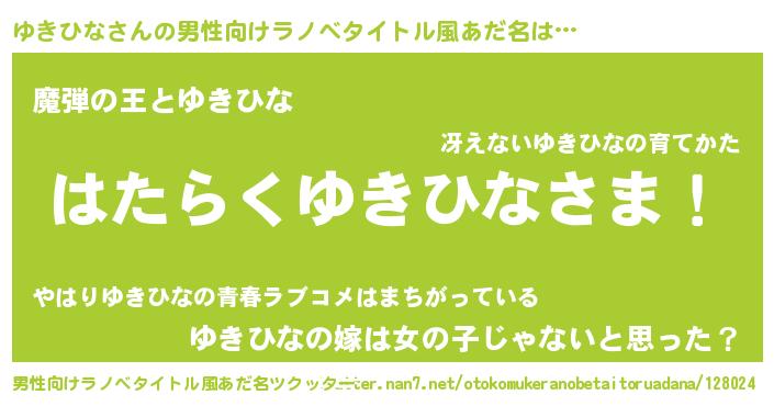 | 意味不明あだ名 | 『住所不定無職ゆきひな(4歳)』 |