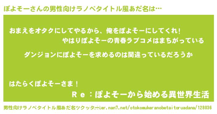 | 胡散臭い通販商品みたいなあだ名 | 『伝統あるサプリメント…その名も「ぽよそー」』 |