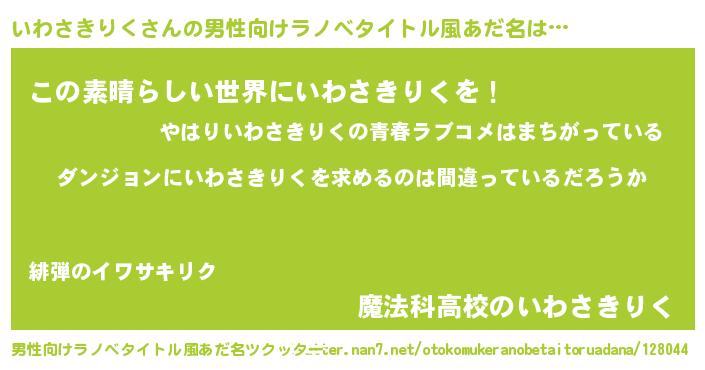 | 女子向けラノベタイトル風あだ名 | 『いわさきりくの卵を拾いまして』 |