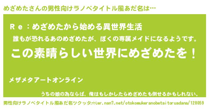 | 意味不明あだ名 | 『住所不定無職めざめた(2歳)』 |