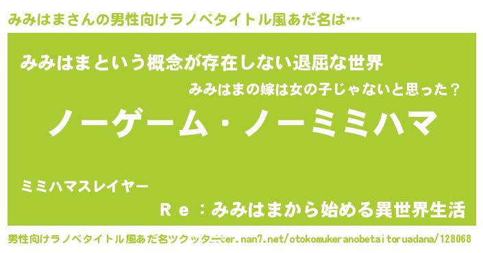 | ヘコむあだ名 | 『みみはま(震え声)』『みみを』 |