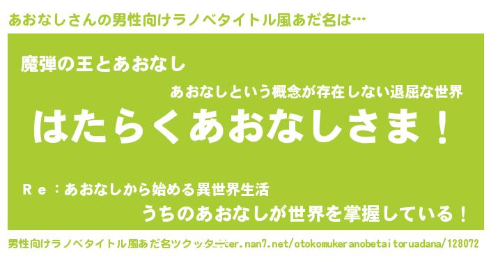 | 意味不明あだ名 | 『住所不定無職あおなし(41歳)』 |