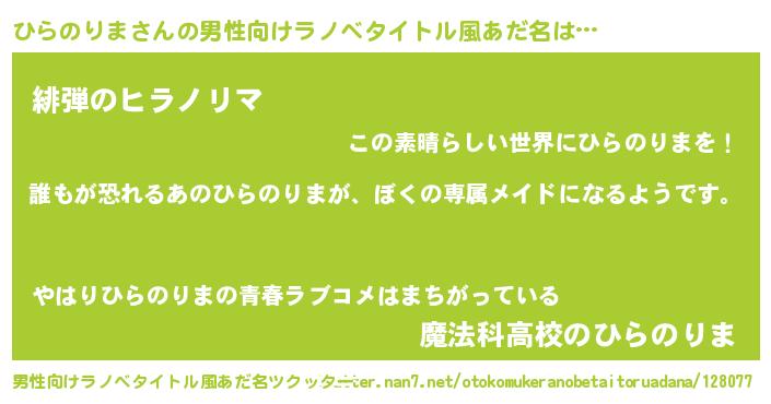 ひらのりまさんの男性向けラノベタイトル風あだ名をツクッター!