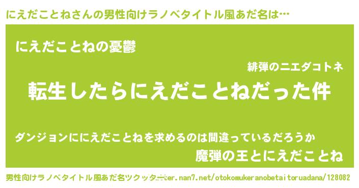 | 胡散臭い通販商品みたいなあだ名 | 『モテモテ間違いなしブレスレット…その名も「にえだことね」』 |