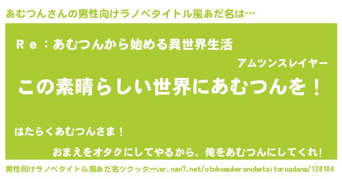 | 意味不明あだ名 | 『住所不定無職あむつん(6歳)』 |