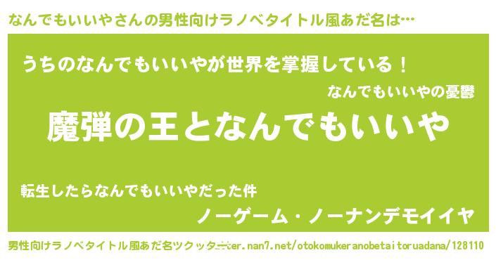 | ヒーロー風カッコイイあだ名 | 『仮面ナンダー』『ネオナンデモイイヤ』 |