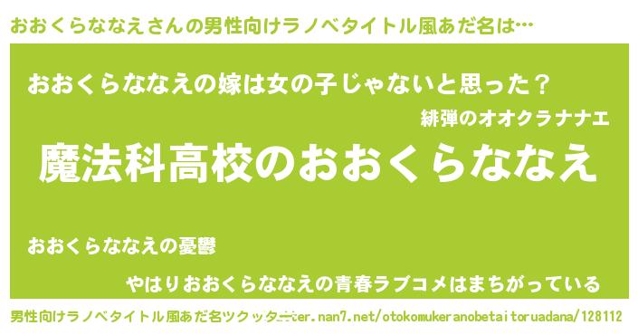 | 意味不明あだ名 | 『自称おおくらななえ』 |