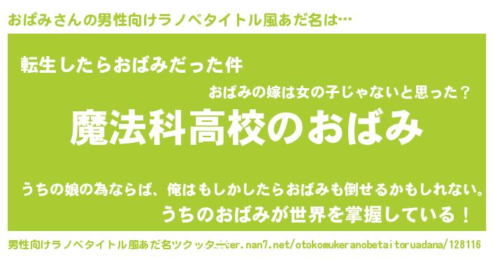 | 女子向けラノベタイトル風あだ名 | 『おばみなんてお断りですっ。』 |