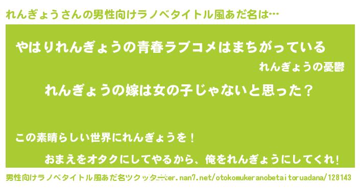 | ヒーロー風カッコイイあだ名 | 『炎刃騎士レン』『愛の使者れんぎょう』 |