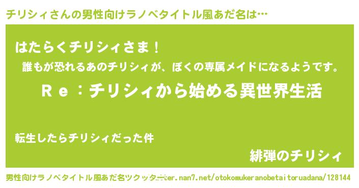 | 意味不明あだ名 | 『自称チリシィ』『永久保存チリシィ』 |