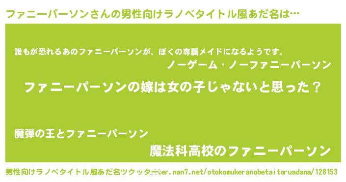 | 女子向けラノベタイトル風あだ名 | 『ファニーパーソン様がみてる』 |