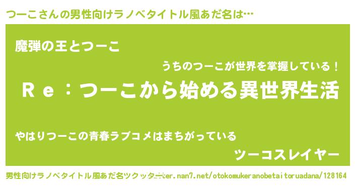 | 女子向けラノベタイトル風あだ名 | 『つーこストレイドッグス』 |