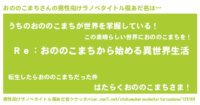 | ヒーロー風カッコイイあだ名 | 『最強戦士オノノコマチ』『仮面オノダー』 |