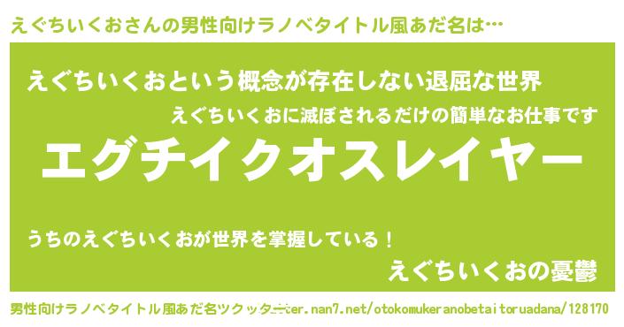 | 胡散臭い通販商品みたいなあだ名 | 『絶対に幸福をもたらす水素水…その名も「えぐちいくお」』 |