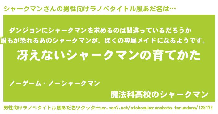 | 女子向けラノベタイトル風あだ名 | 『男装シャークマンの憂鬱な任務』 |