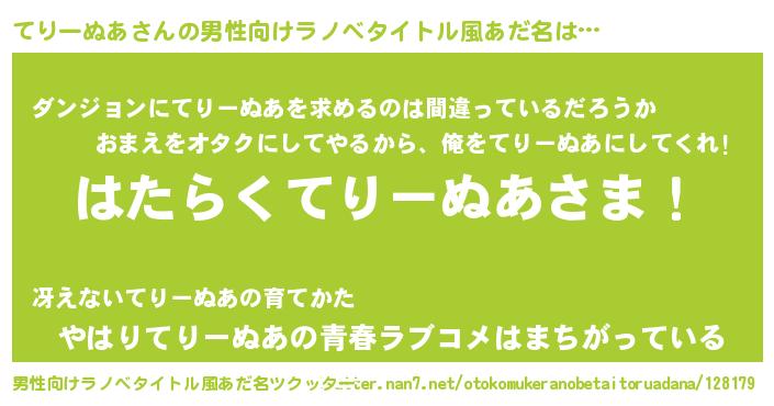 | 胡散臭い通販商品みたいなあだ名 | 『信頼と実績のネックレス…その名も「てりーぬあ」』 |