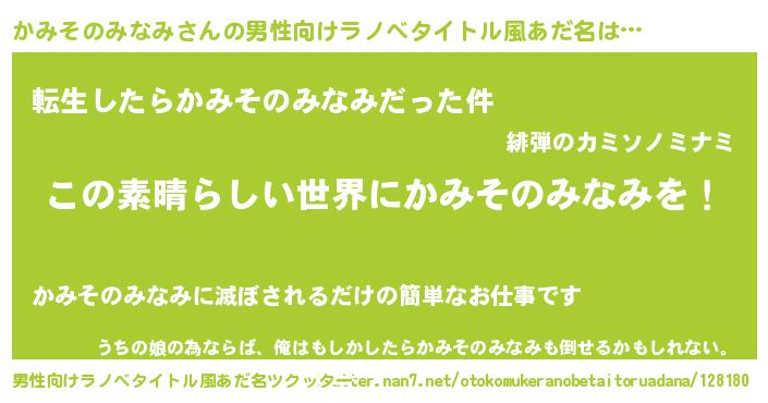 | 胡散臭い通販商品みたいなあだ名 | 『世界中を虜にした100年もののヴィンテージワイン…その名も「かみそのみなみ」』 |