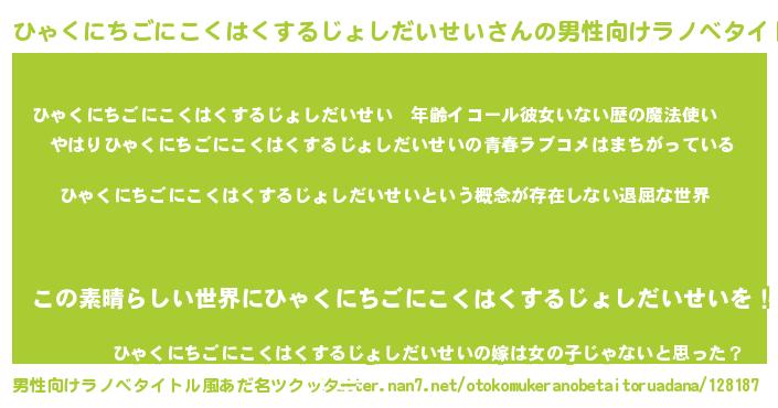 | ヘコむあだ名 | 『ひゃくにちごにこくはくするじょしだいせい(笑)』 |