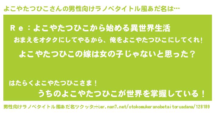 | 女子向けラノベタイトル風あだ名 | 『よこやたつひこ様がみてる』 |