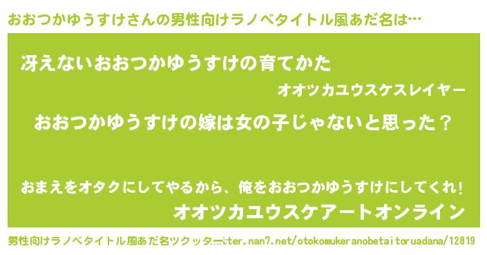 | 女子向けラノベタイトル風あだ名 | 『おおつかゆうすけの卵を拾いまして』 |
