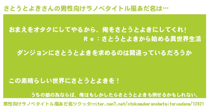 | 胡散臭い通販商品みたいなあだ名 | 『信頼と実績のネックレス…その名も「さとうとよき」』 |