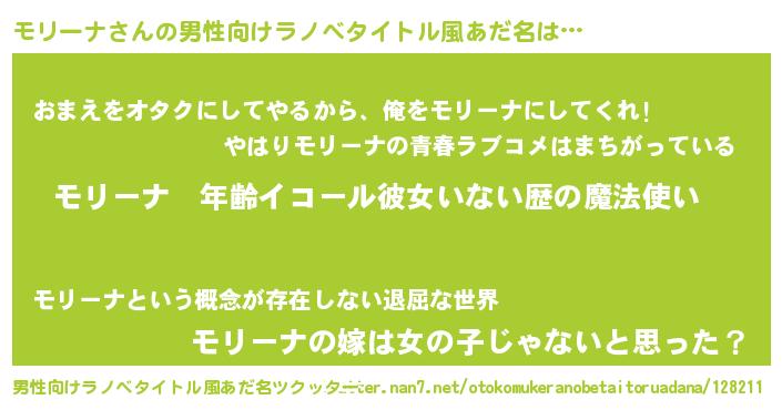 | 女子向けラノベタイトル風あだ名 | 『モリーナの玉の輿計画!』 |