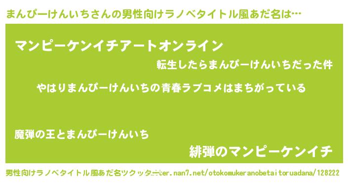 | 女子向けラノベタイトル風あだ名 | 『まんぴーけんいちの雑貨屋さん』 |