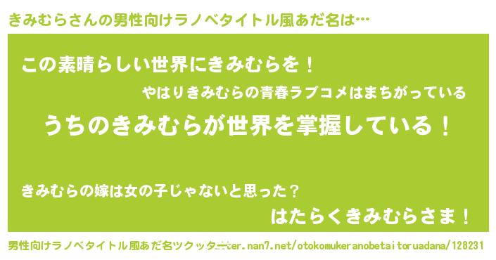 | 胡散臭い通販商品みたいなあだ名 | 『あなたにだけ特別に提供する100年もののヴィンテージワイン…その名も「きみむら」』 |