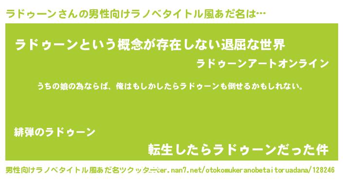 | 意味不明あだ名 | 『ラドゥーンフォーエバー』 |